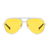These aviator sunglasses have a double bridge and an ultra-lightweight aluminium-magnesium metal frame for a sleek and modern look. The yellow lenses are suitable for night driving and are as practical as they are beautiful.